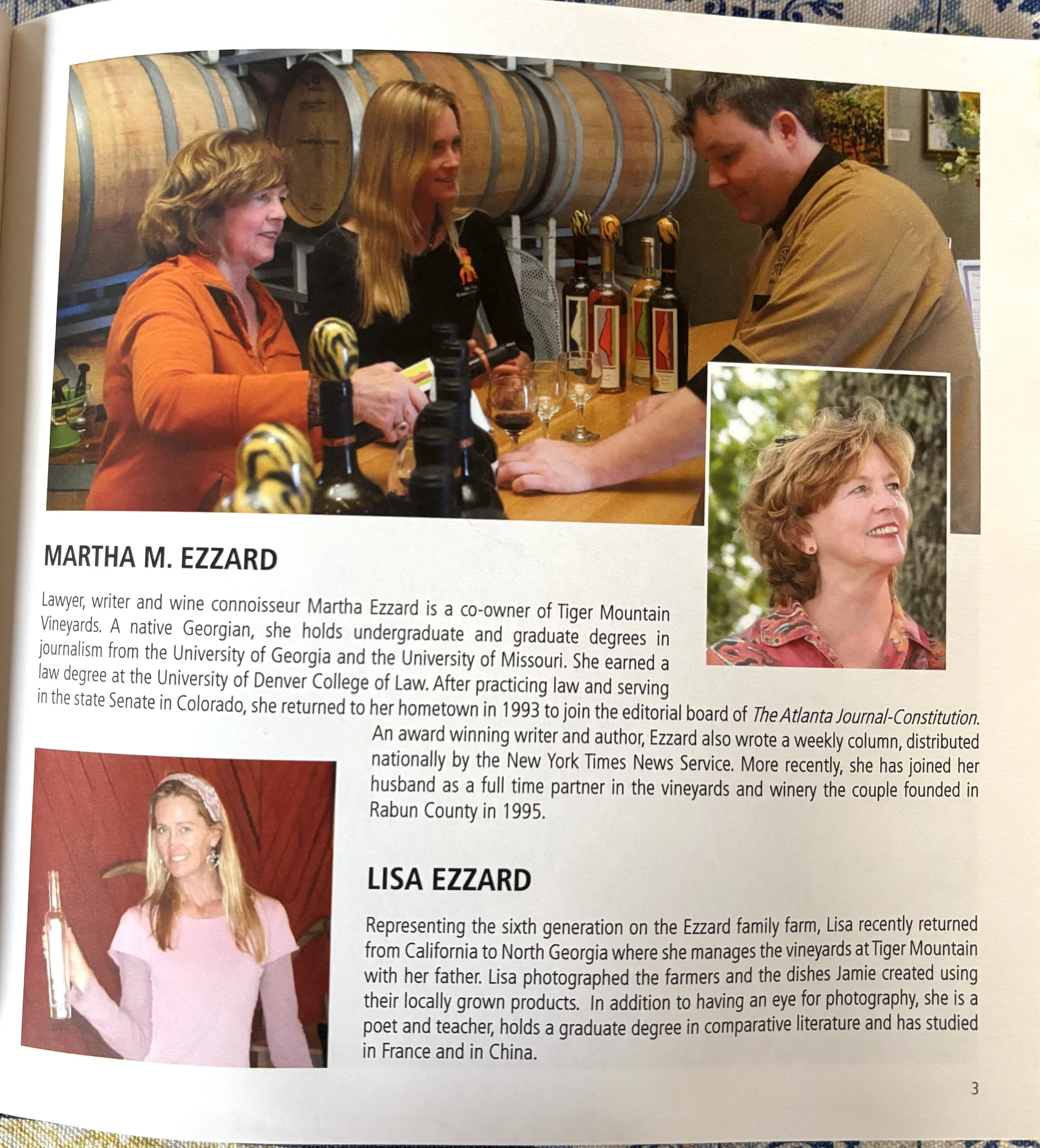 Lisa Ezzard is a 6th generation farmer at Tiger Mountain Vineyards in the northeastern Appalachians of Georgia, where she has embraced the art of wine growing and making under the guidance of her father, Dr. John Ezzard, a pioneer in fine winemaking for the region. Her role as a vintner has included: growing six red varietals - Malbec, Cabernet Franc, Touriga Nacional, Tannat, Mourvèdre, and the indigenous Norton or Cynthiana, and two white varietals - Viognier and Petit Manseng - on 10 acres of vineyards; crushing, pressing, fermenting, barrel aging, filtering, and bottling wines; orchestrating vibrant seasonal events like the Awakening of the Vines, where wine club members and musicians celebrate the vineyard’s rebirth; and harvest parties that bring the community together to pick and toast the new vintage. At Tiger Mountain’s historic Red Barn Café, she also managed food and wine pairings, hosted live music, and organized picturesque weddings amidst the vines.